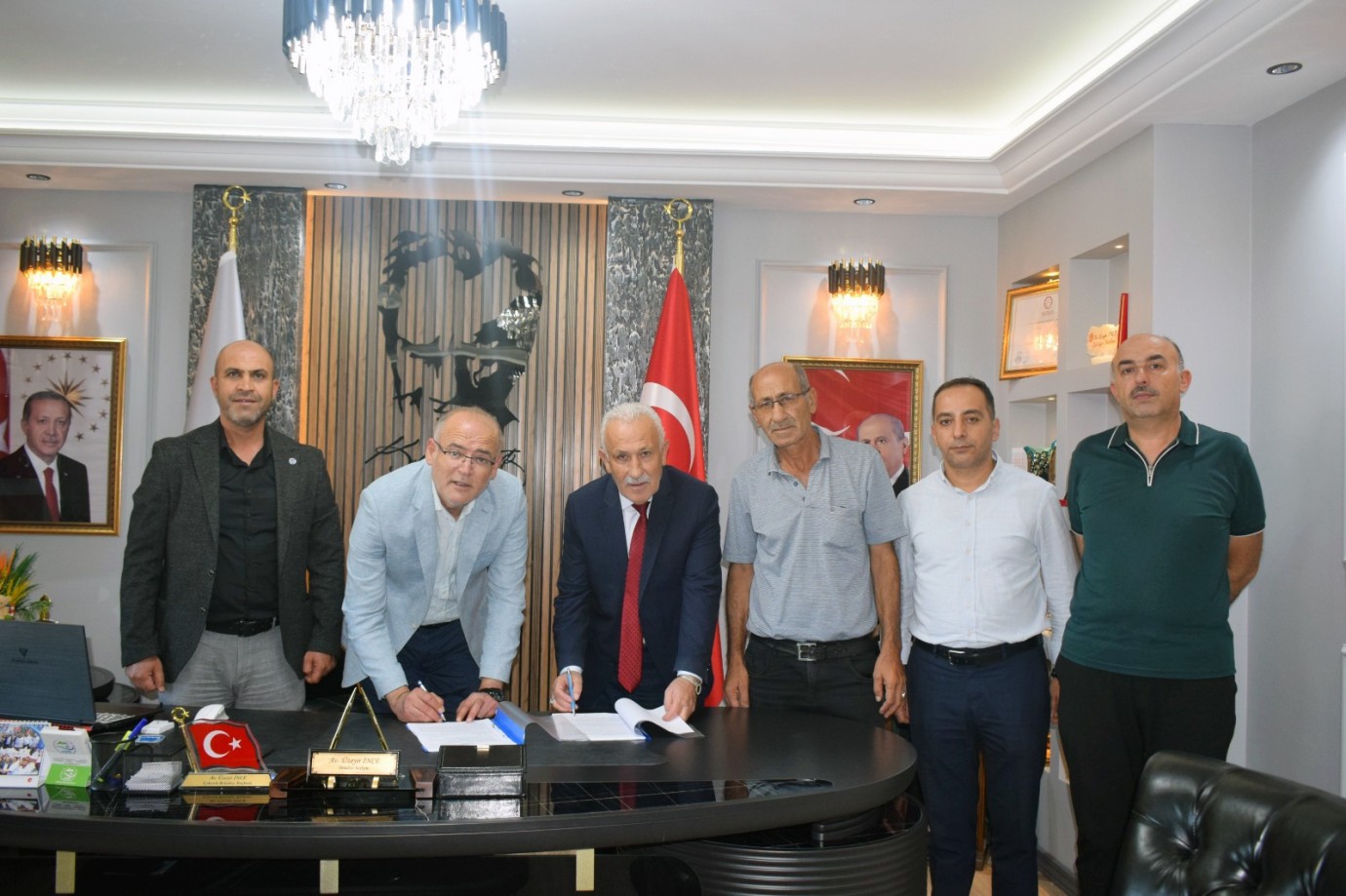 Sözleşmenin resmi imza törenine belediye yetkilileri, sendika temsilcileri ve işçi delegeleri katılırken, tören sonunda işçilerle birlikte hatıra fotoğrafı çekildi.